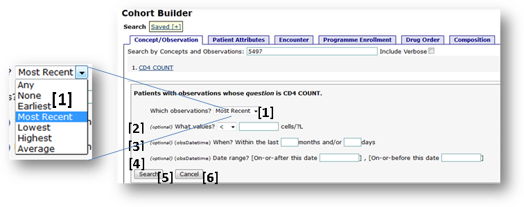 Step 2: Click on the Concept/Observation tab to show the page to be used in searching.