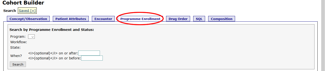 OpenMRS has a feature with which you can save the any query constructed using the steps above for future use. This has the advantage that you do not need to go back and compose the query again and is mostly useful for repetitive routine/periodic querying tasks. The saved query compostions are referred to as Saved Searches.